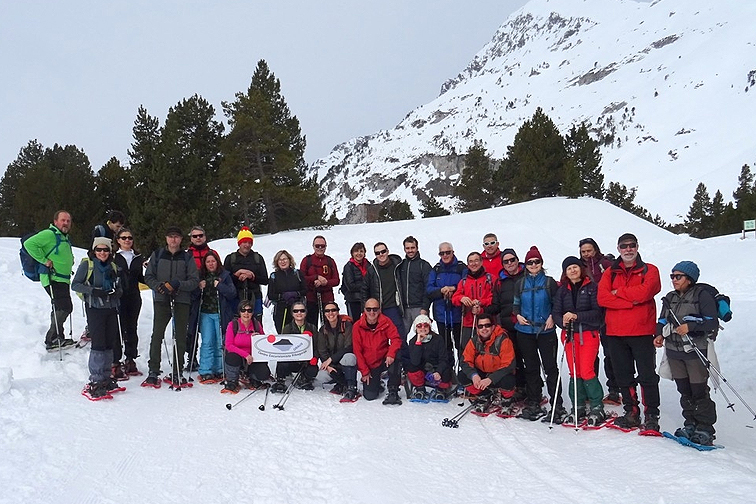 El Centro Excursionista Ribagorza (CER) cumplió el pasado domingo con su tradicional excursión con raquetas de nieve por los Llanos del Hospital de Benasque.